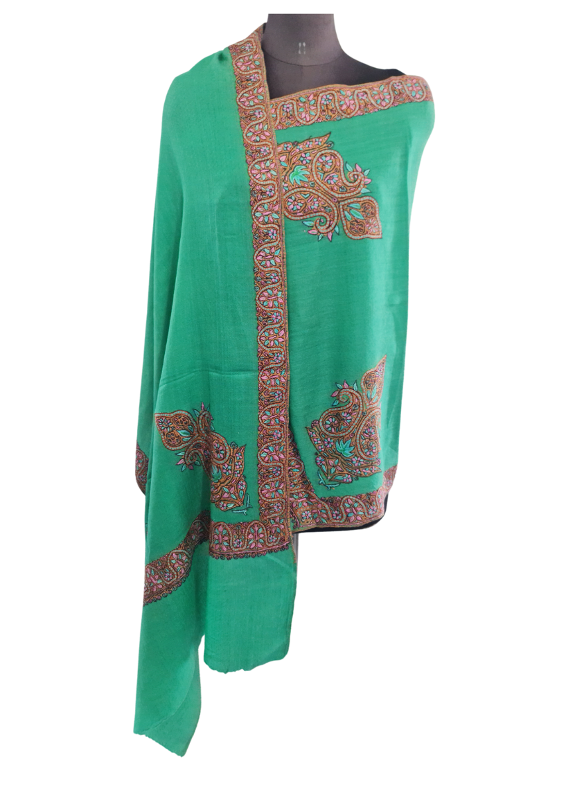 Wrap yourself in the timeless elegance of our Sozni Tosha Shawl, meticulously crafted by skilled artisans from the serene valleys of Kashmir. Each shawl is a masterpiece of traditional Kashmiri needlework, showcasing intricate floral motifs and delicate patterns that epitomize the rich cultural heritage of the region.